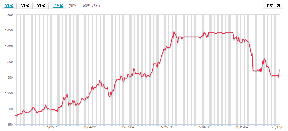 우리은행 환율 그래프를 통해서 알수 있듯이 1,200원대 환율이 1,400원대까지 올랐었네요.