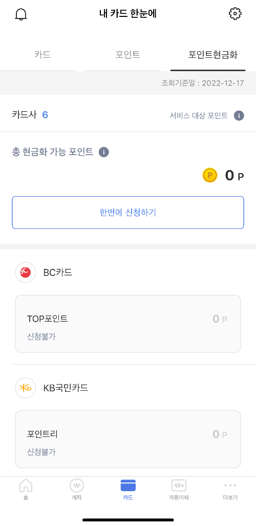 조회된 카드포인트를 한번에 자신의 계좌로 입금이 가능합니다.
