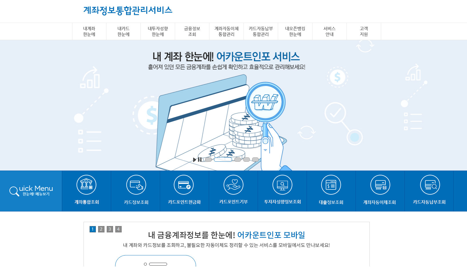 계좌정보통합관리서비스 홈페이지 이용하기