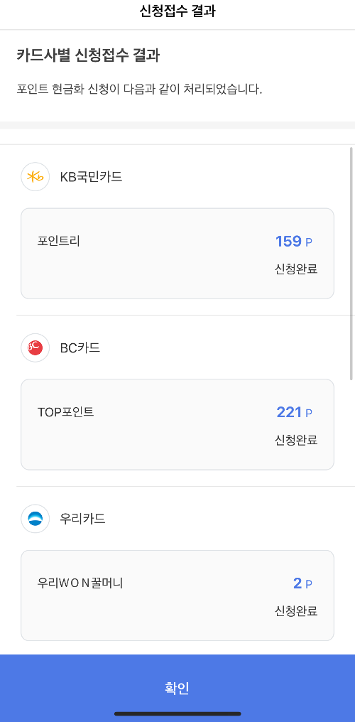 카드포인트 조회결과 확인하기