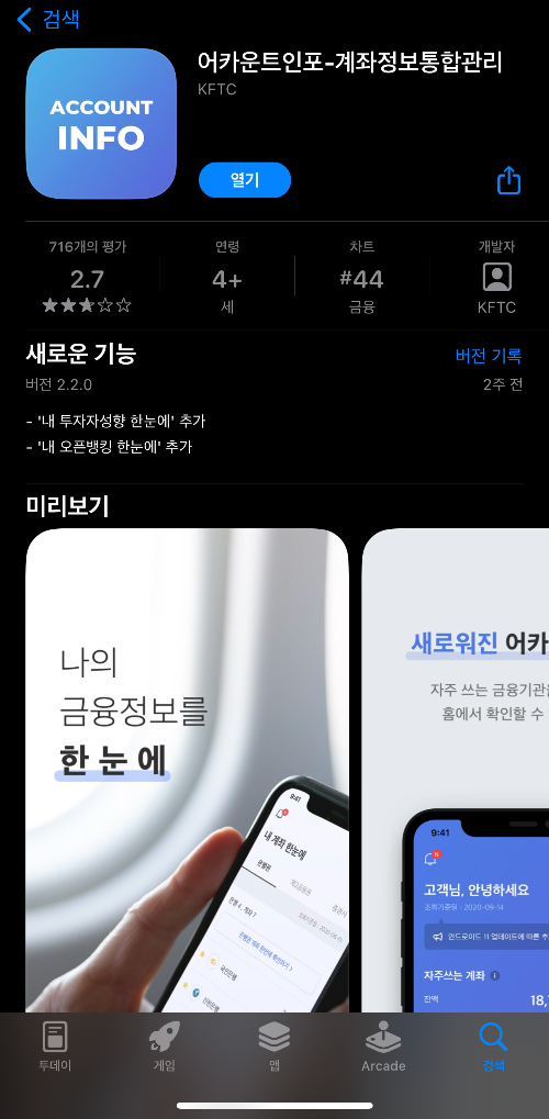 이글을 보시는 분들도 한번 조회해 보셔서 커피 한잔 값이라도 받는 것이 소멸시키는 것보다 나을거라 생각됩니다.어카운트인포 앱 이용하기 (계좌통합관리)