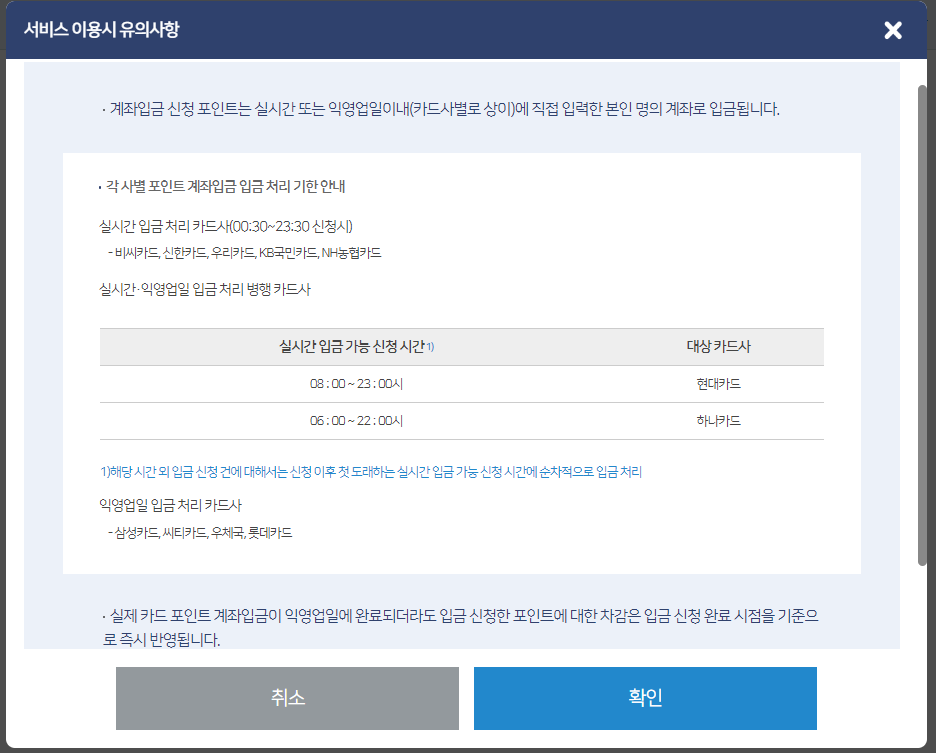 카드사 포인트 계좌로 입금받기