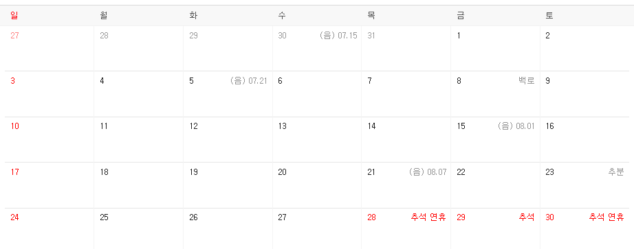 - 9월은 추석 연휴가 있습니다.
