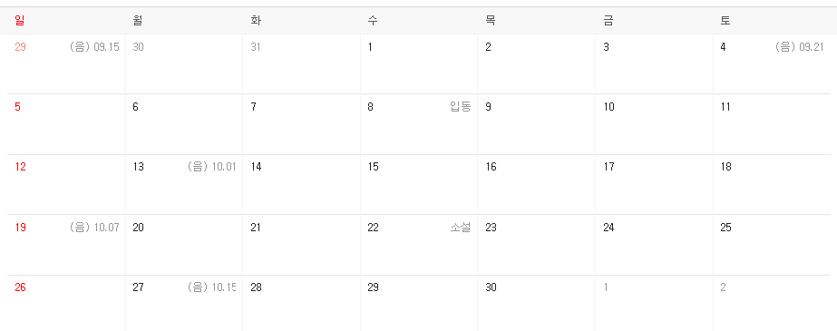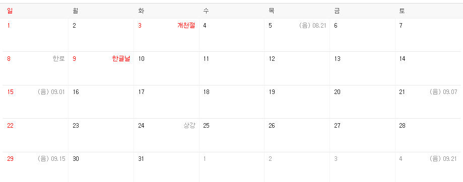 2023년 9월 휴일 2023년 10월