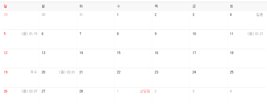 - 2월은 아쉽게도 휴일은 없어요.