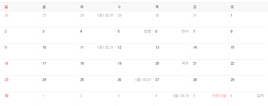 - 4월은 아쉽게도 휴일은 없어요.