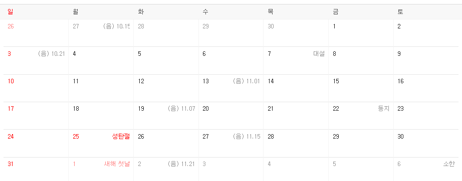 - 11월은 아쉽게도 휴일은 없어요.